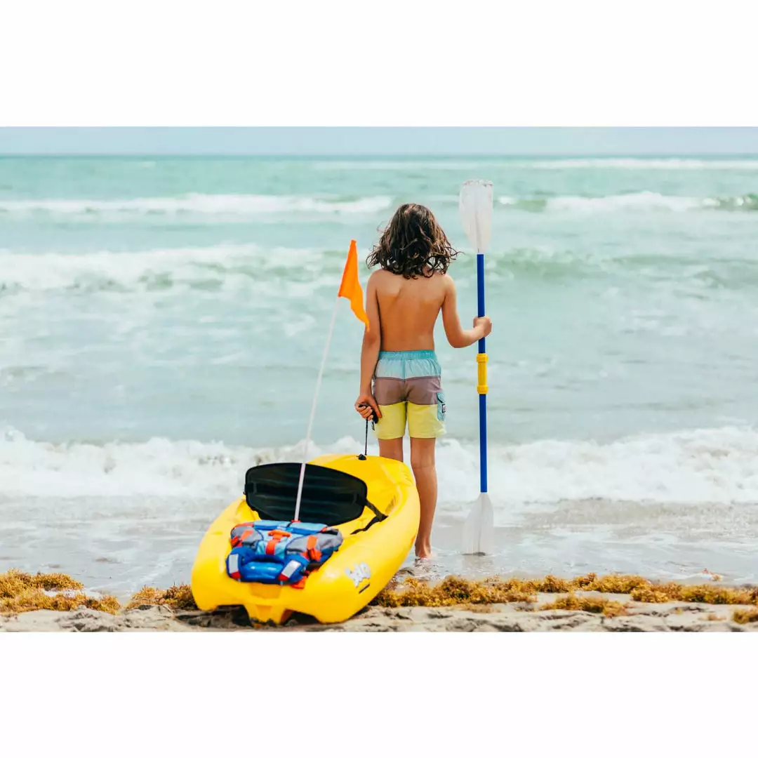 This kids kayak paddle is the perfect choice for young, first-time paddlers. Its three-piece assembly is ideal for compact storage and its kid-sized ribbed blades helps maintain a good tempo on the water. It’s a great fit for small, eager hands and is free from heavy metals and phthalates.,